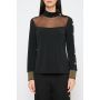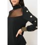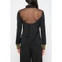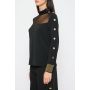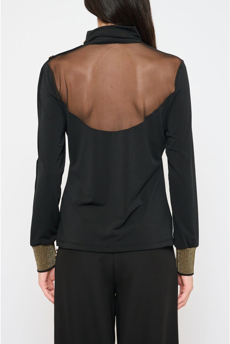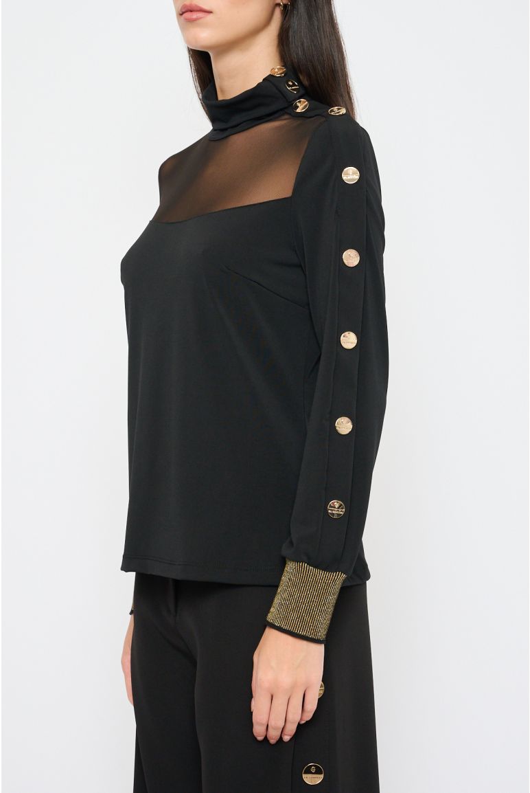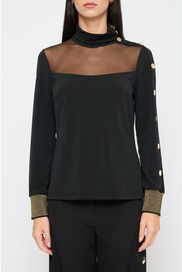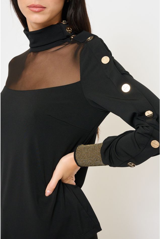 Blusa con parte superiore semi-trasparente e bottoni laterali