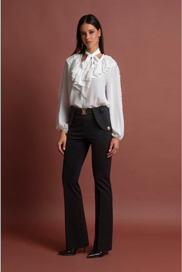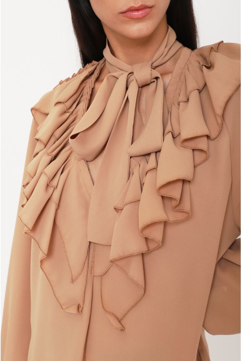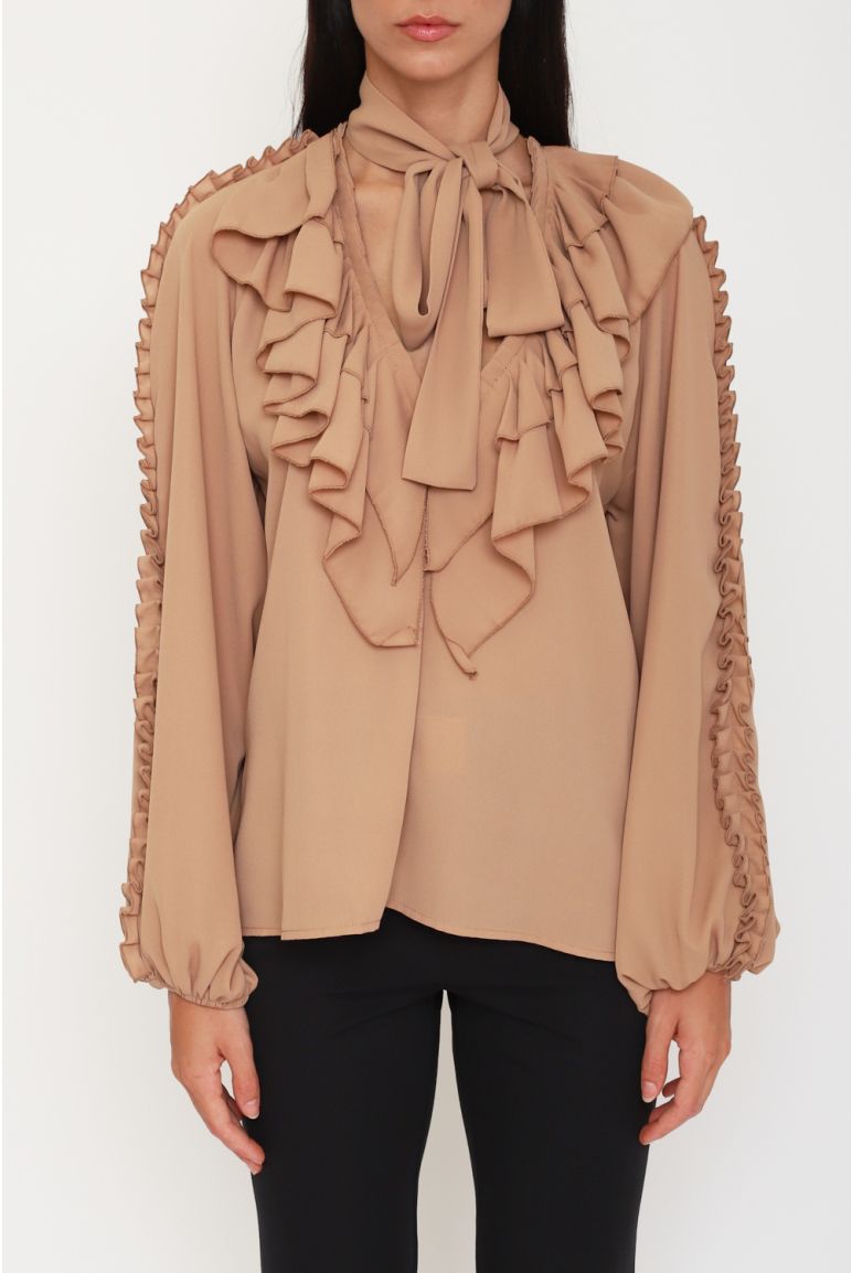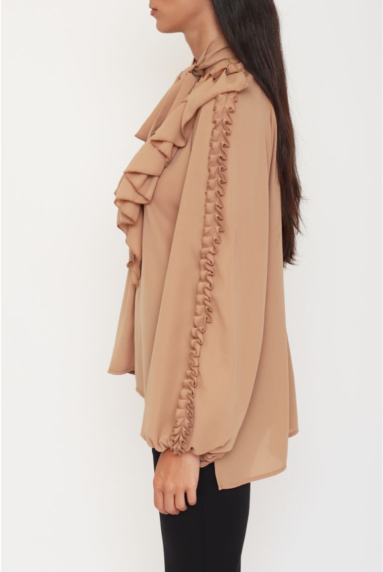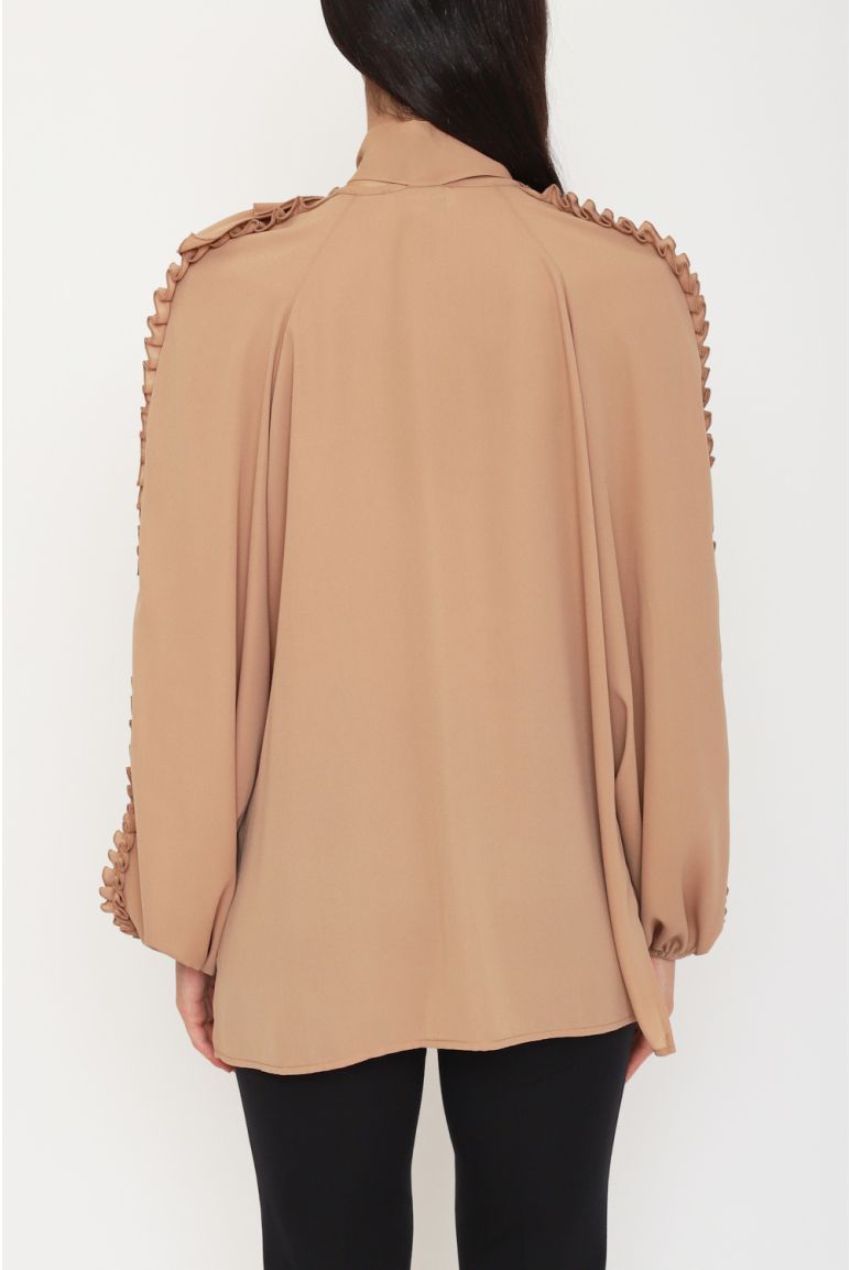 Blusa in georgette con maxi rouches, fiocco al collo e maniche balloon Georgette Vita regolare Fiocco al collo removibile, bottoni dorati logati ai polsi Rouches sul davanti e lungo le maniche, polsini elasticizzati, taglio fluido 100%PL SETIFICATO