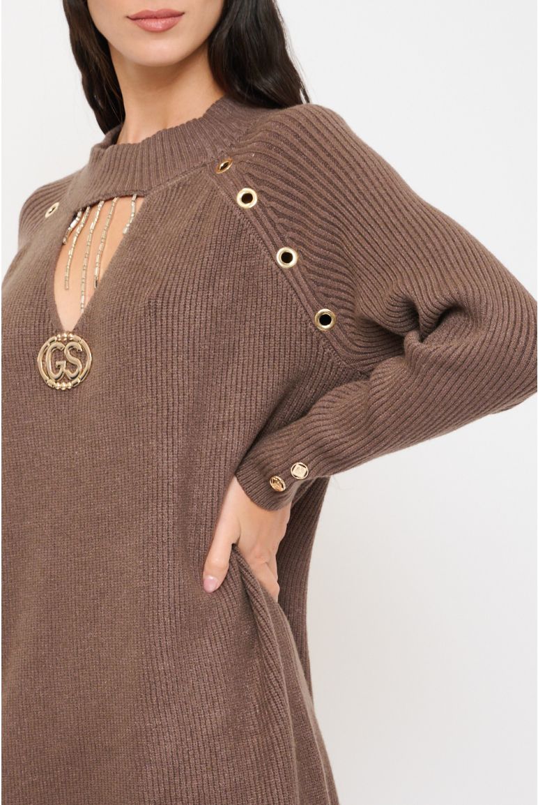 Dolcevita in maglia con tasche cargo frontali trapuntate e catene gioiello