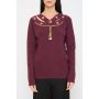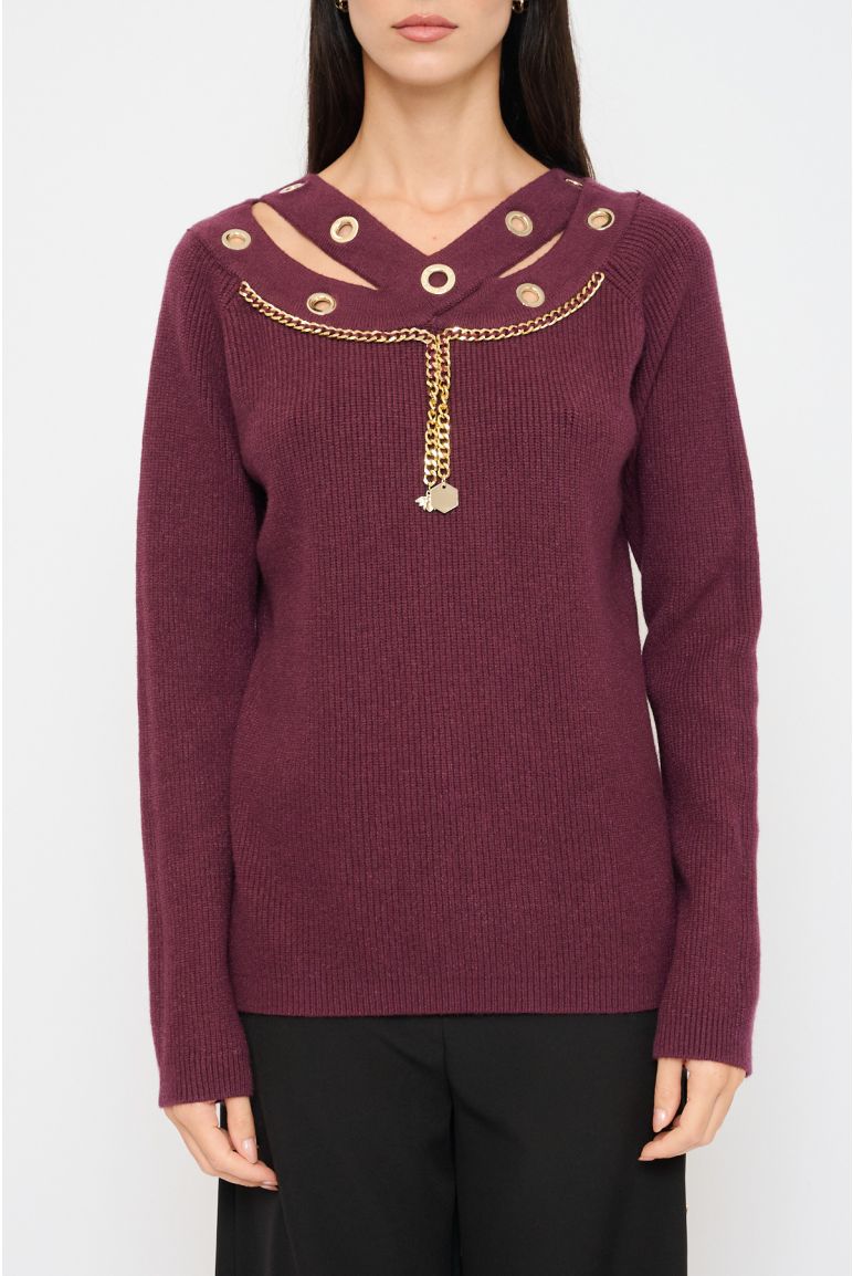 Maglia con incrocio sullo scollo Maglia elasticizzata Scollo con incrocio e occhielli dorati Catena cucita a mano com charms Maniche lunghe 56%VI 28%PL 16%PA